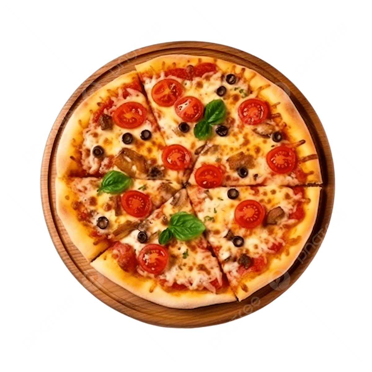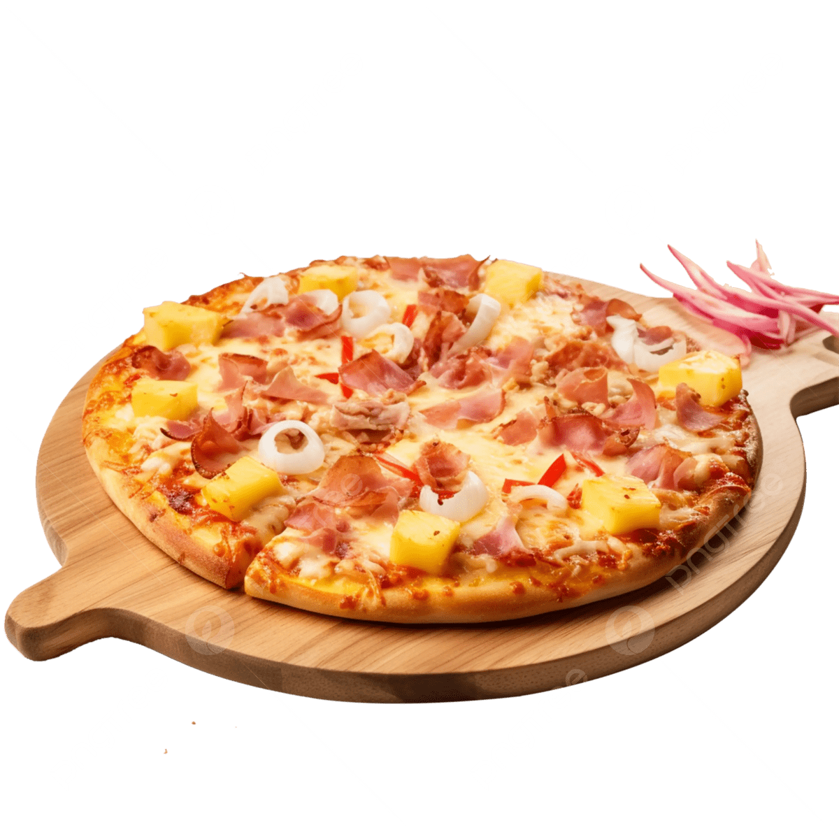 Molho caseiro, mussarela, frango, presunto, bacon e orégano